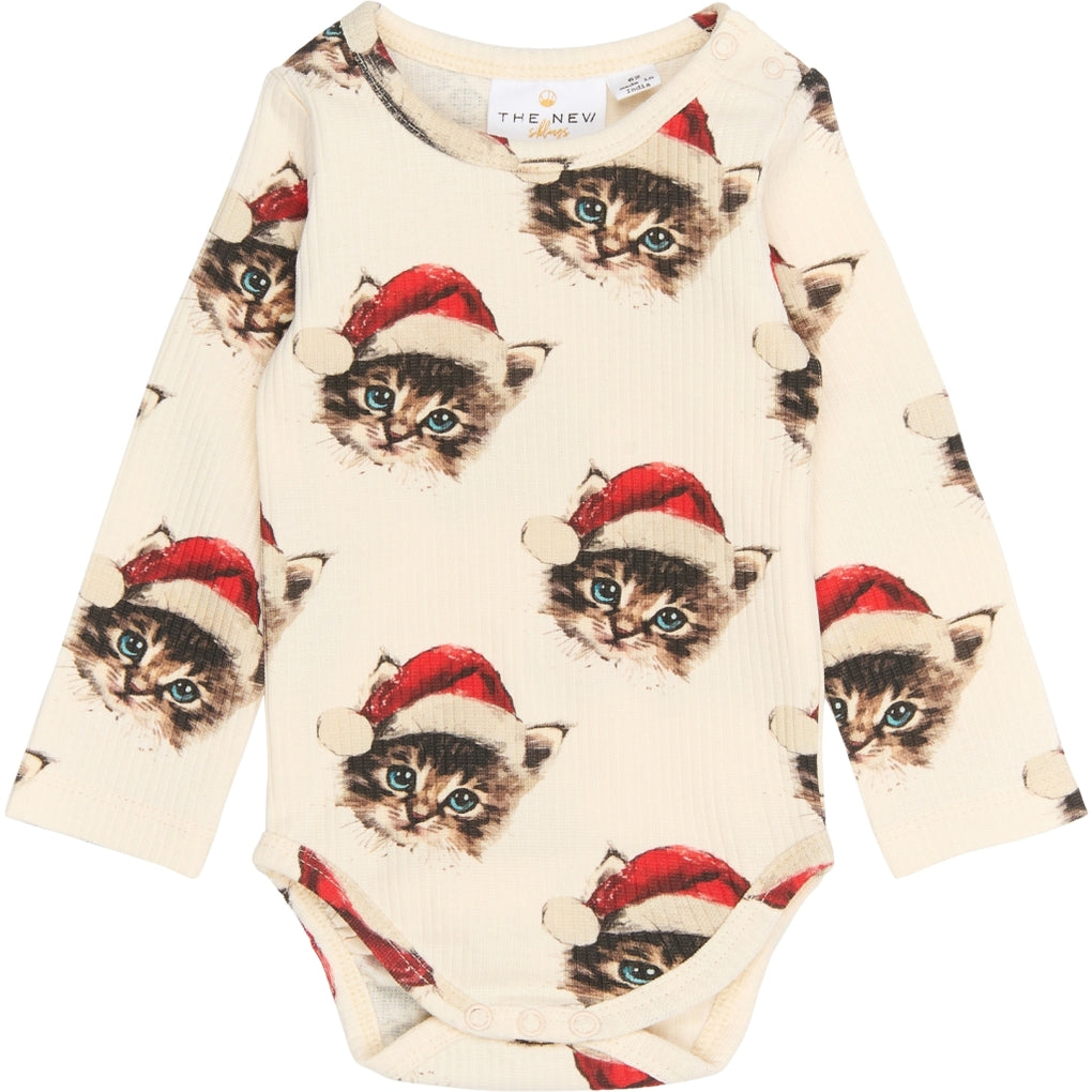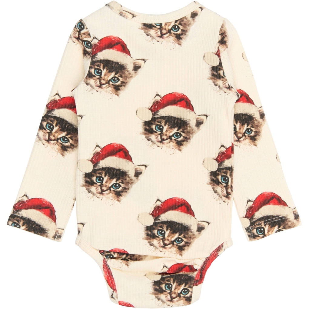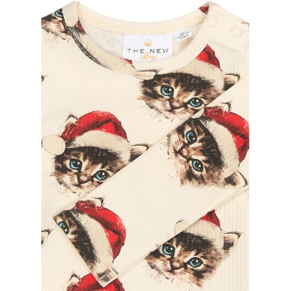 TNSBHoliday Long-sleeved Rib Bodysuit - Gardenia Cat AOP
