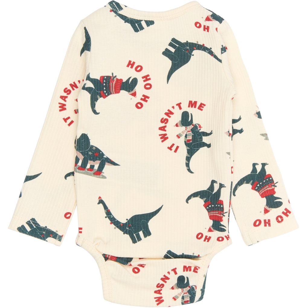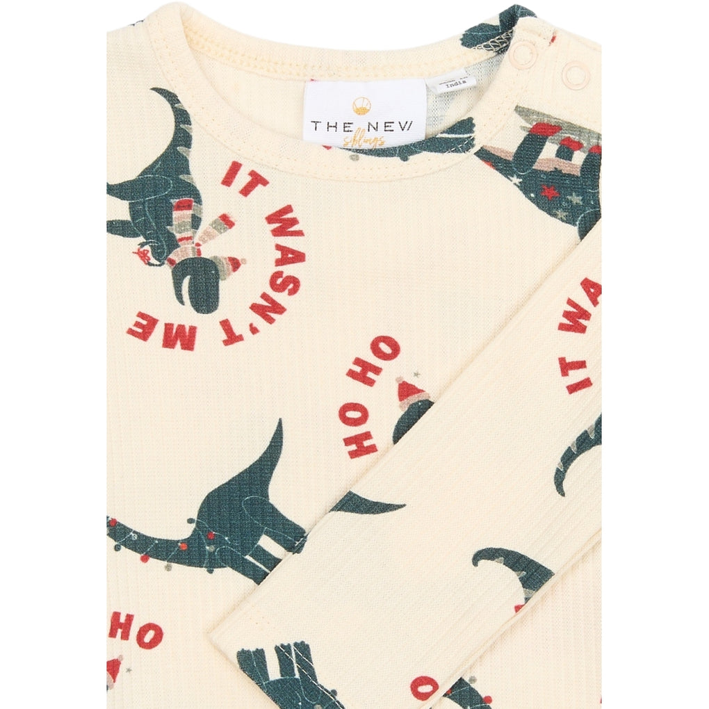 TNSBHoliday Long-sleeved Rib Bodysuit - Gardenia Dino AOP