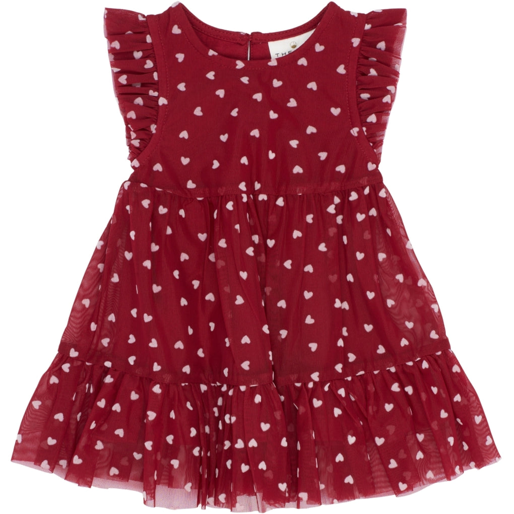 This dress from THE NEW Siblings is perfect for festive occasions with its romantic and playful design. It’s made from layered tulle with a delicate all-over heart print and features sweet ruffle details at the sleeves and hem. The dress has a round neckline and a comfortable fit with a gently flared skirt, offering plenty of freedom of movement and an airy look.