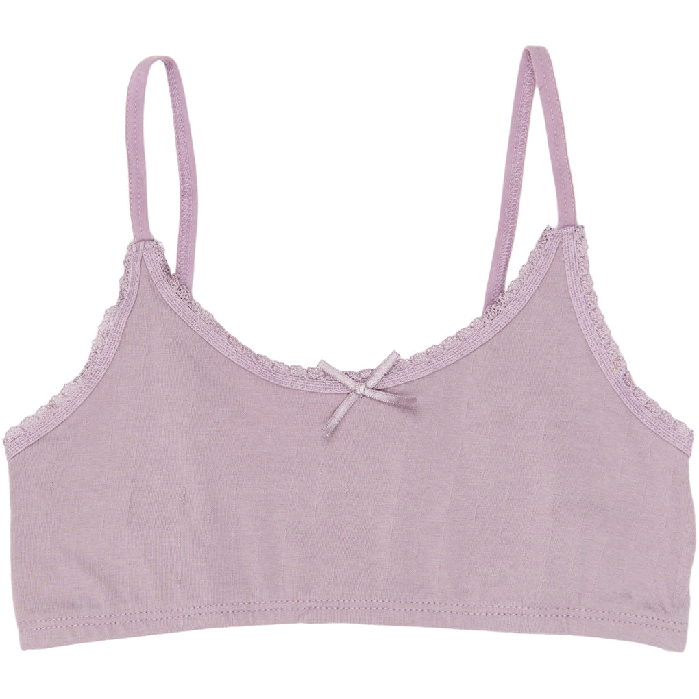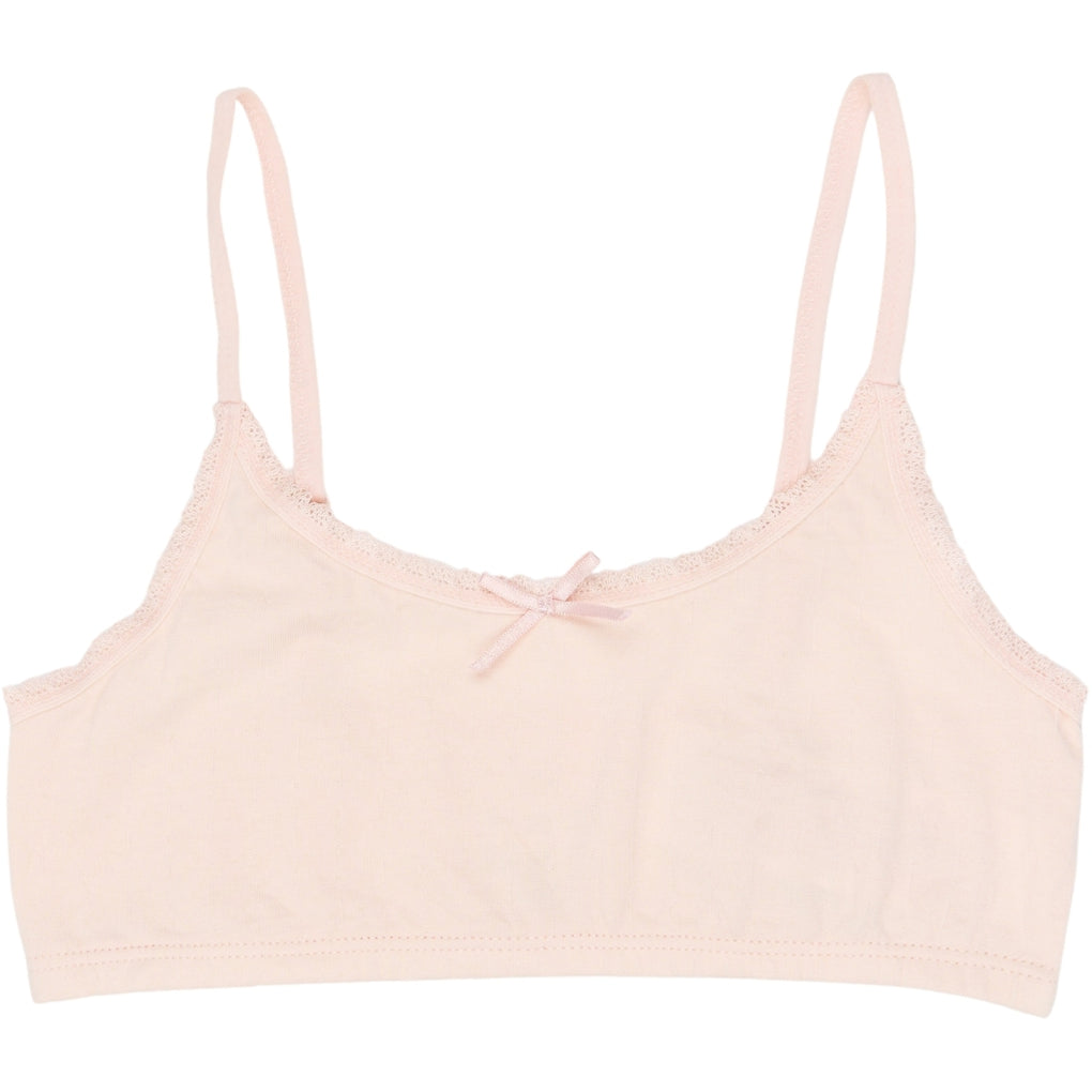 This 3-pack of girls’ short strap tops is made from a cotton blend with elastane for stretch and a close fit. Each top has thin shoulder straps and a scoop neckline, finished with lace edging and a small bow at the center front. The fitted silhouette sits smoothly under layers and works well beneath T-shirts, shirts, or dresses. Solid shades create a simple look suitable for everyday underwear and easy styling.