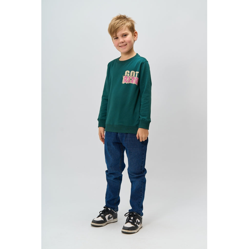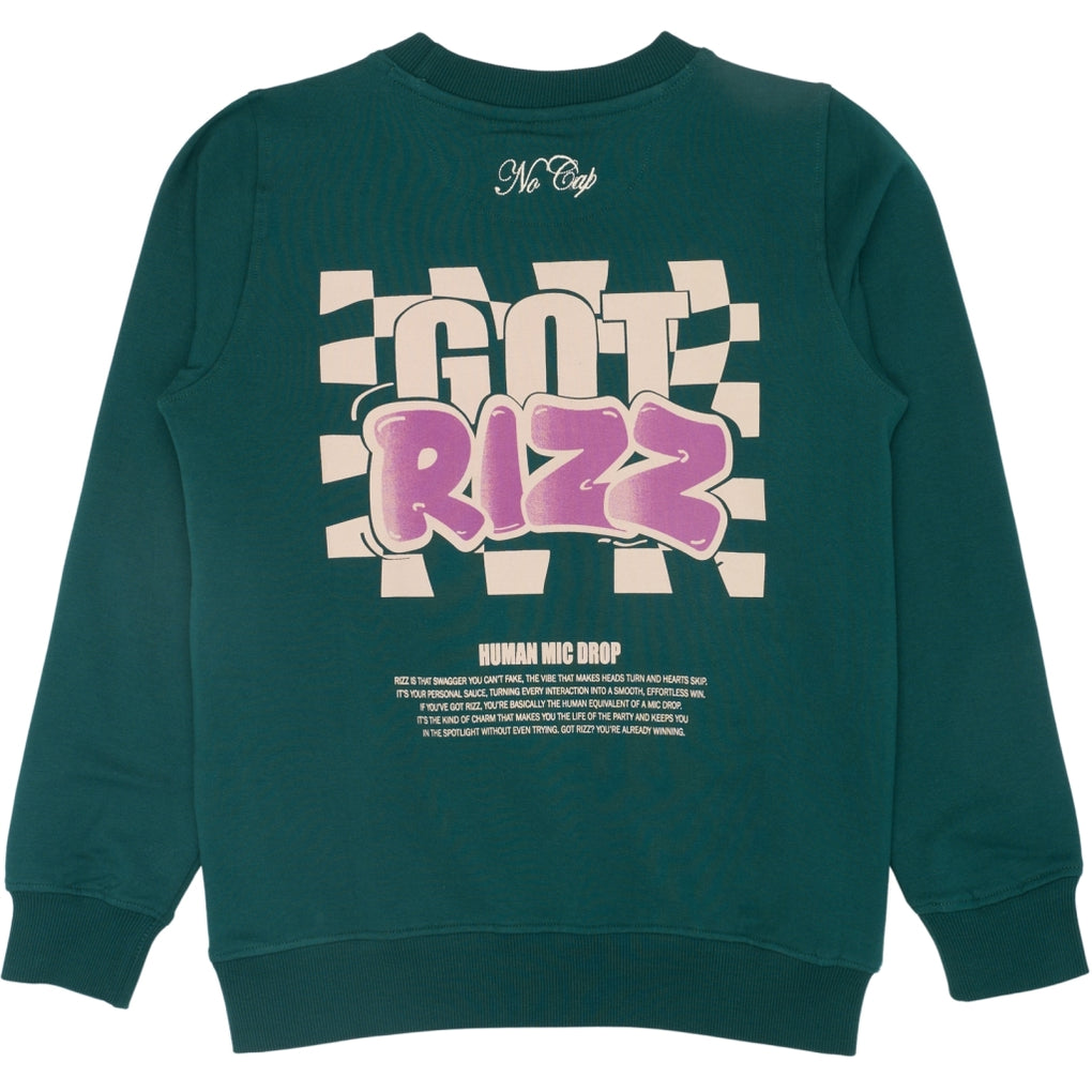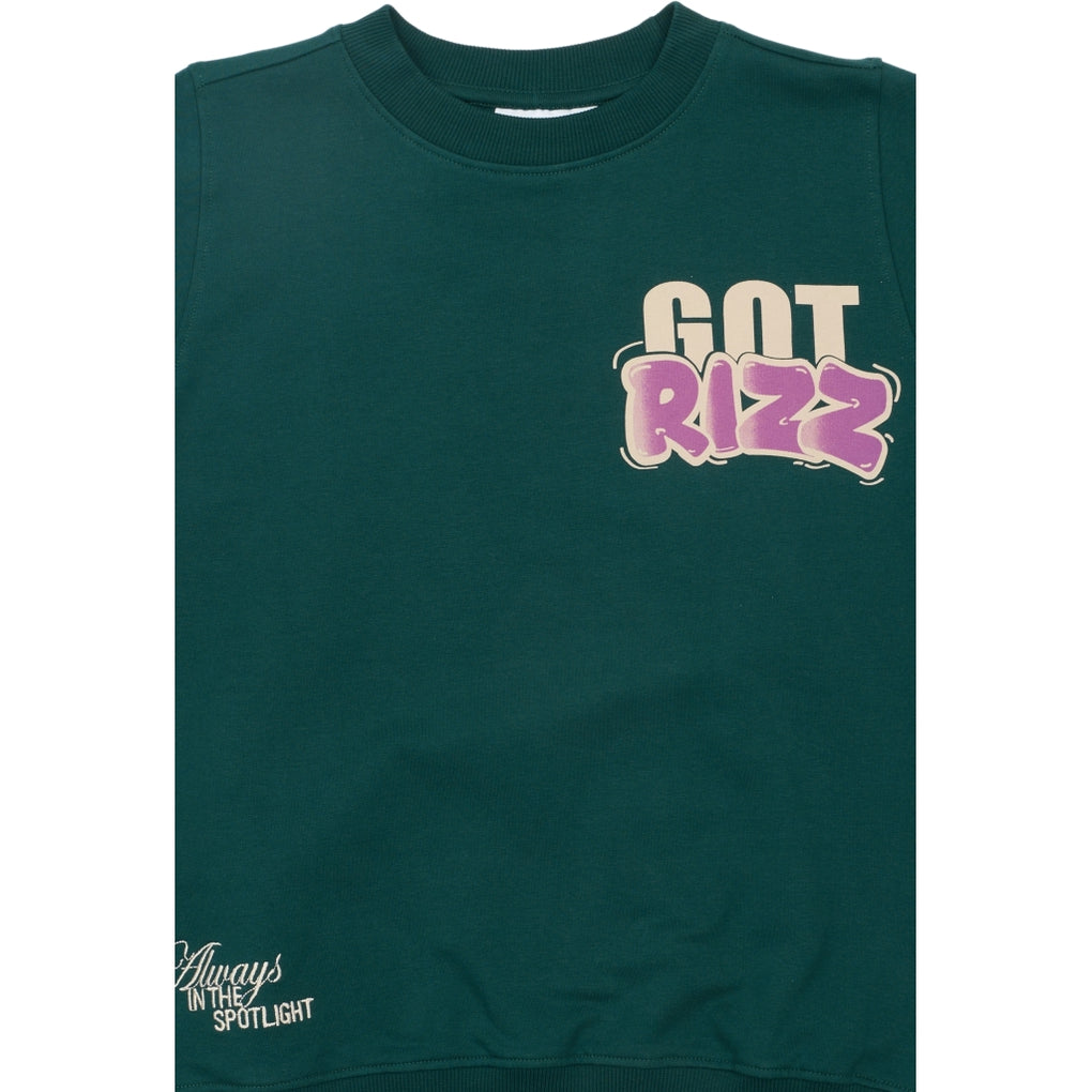 This sweatshirt from THE NEW has a trendy and relaxed look. It features a cool front print as well as a large, eye-catching back print with the text "GOT RIZZ," adding a modern and streetwear-inspired touch. This shirt has a classic round neckline and long sleeves, making it easy to style for both everyday wear and casual outfits.