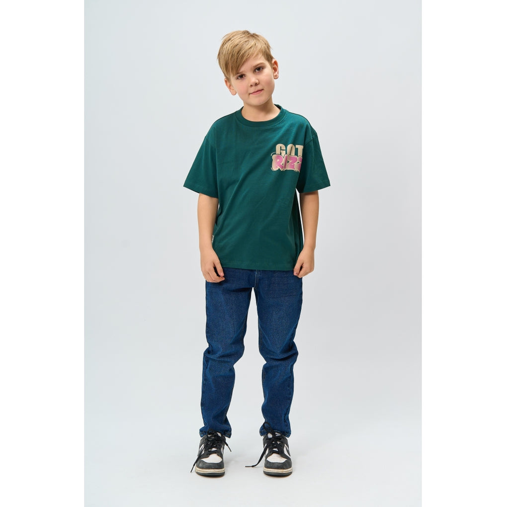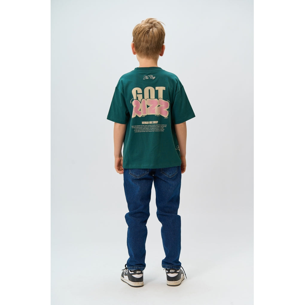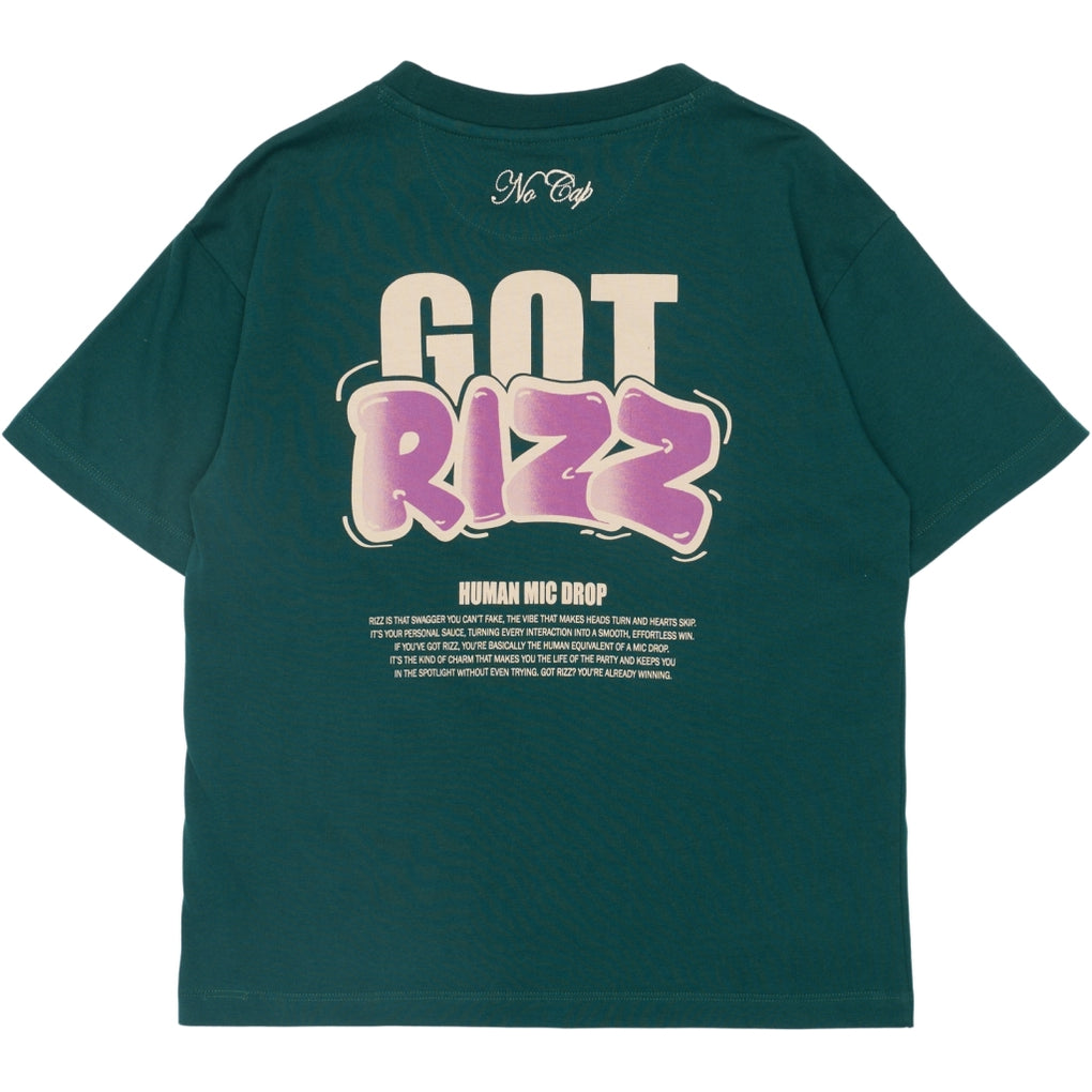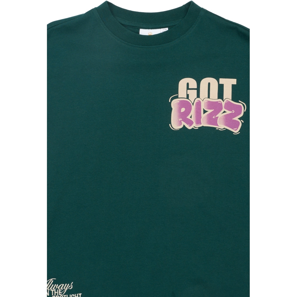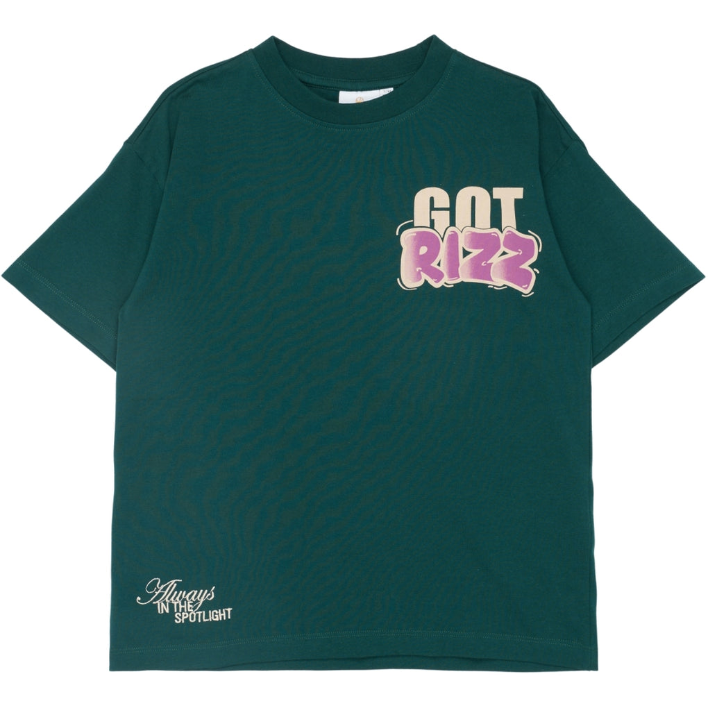 This T-shirt from THE NEW has a trendy and relaxed look with its oversized fit. It features a cool front print as well as a large, eye-catching back print with the text "GOT RIZZ," adding a modern and streetwear-inspired touch. The T-shirt has a classic round neckline and short sleeves, making it easy to style for both everyday wear and casual outfits. Available in two colors.