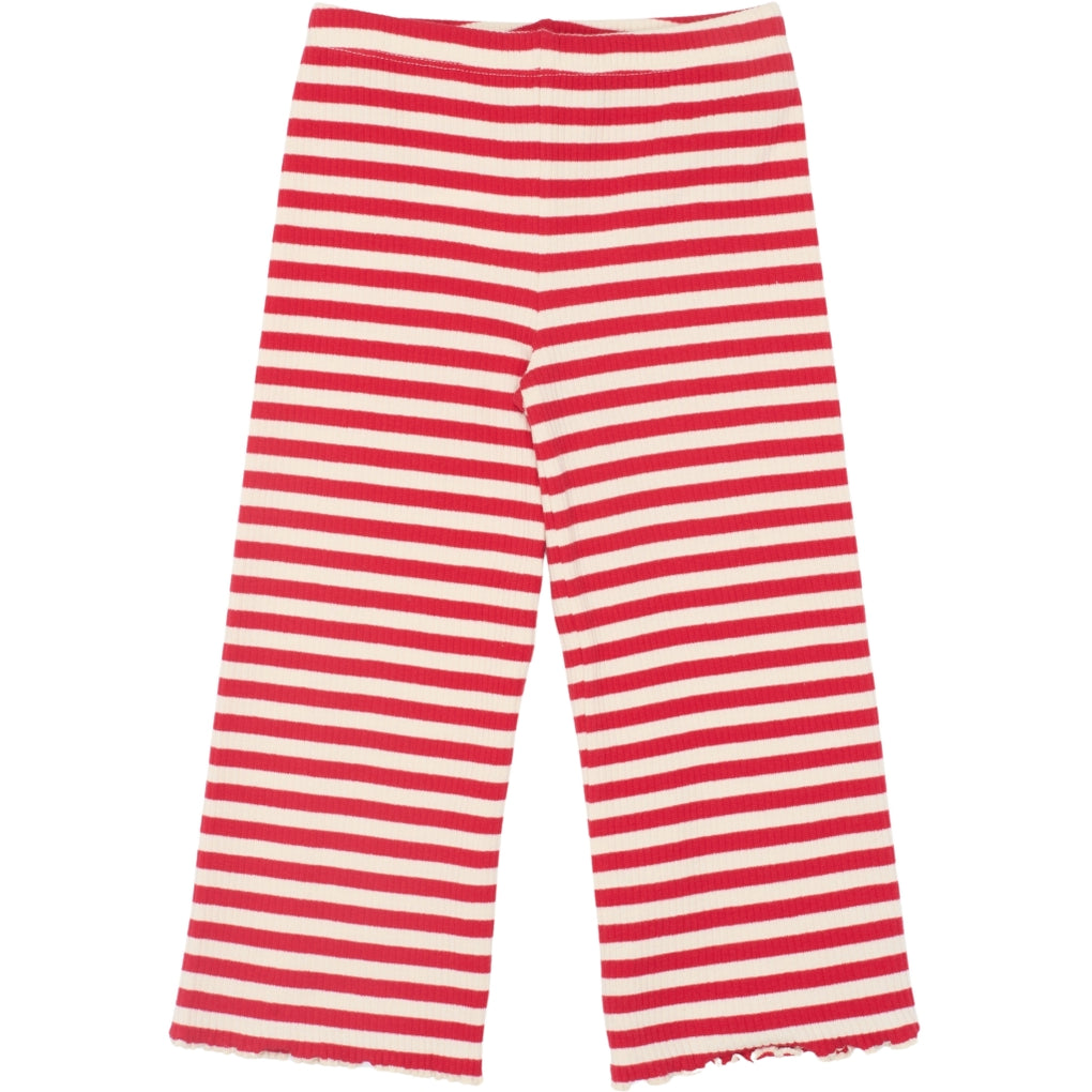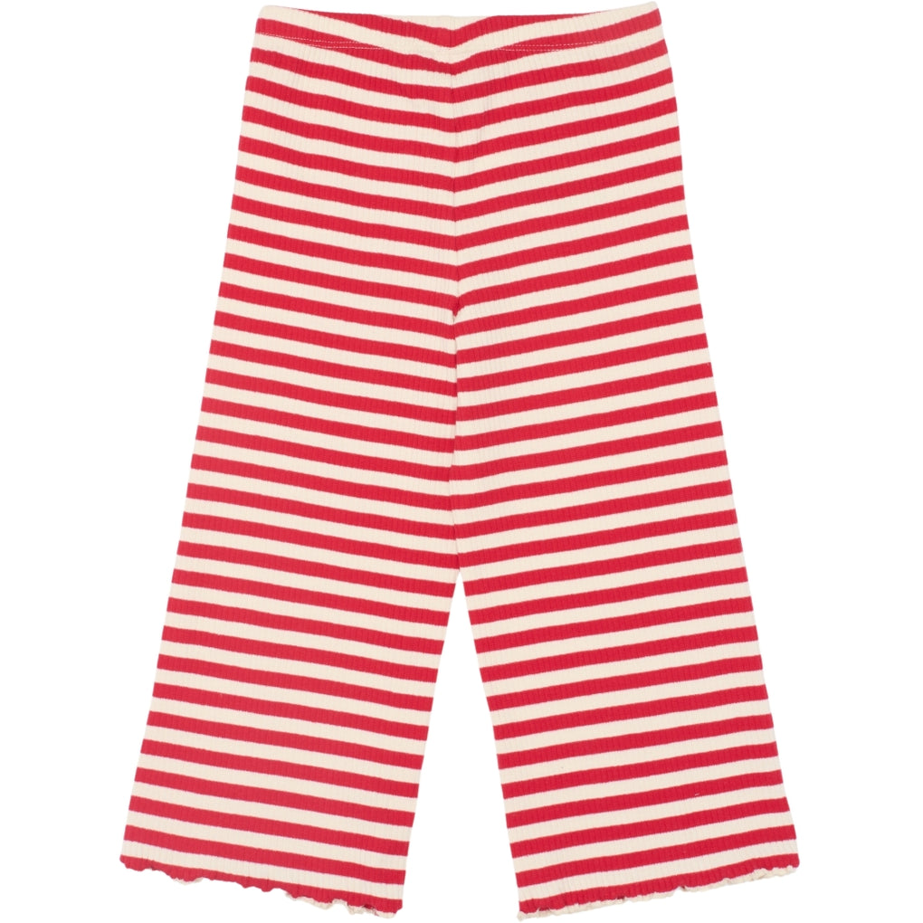 These pants from THE NEW Siblings are a sweet and comfy style with a playful vibe. Made from soft and stretchy ribbed fabric, they feature a classic striped design and feminine lettuce-edge hems at the legs. The elastic waistband ensures a flexible and comfortable fit all day long. Available in two colors and easy to pair with a matching top for a coordinated set.