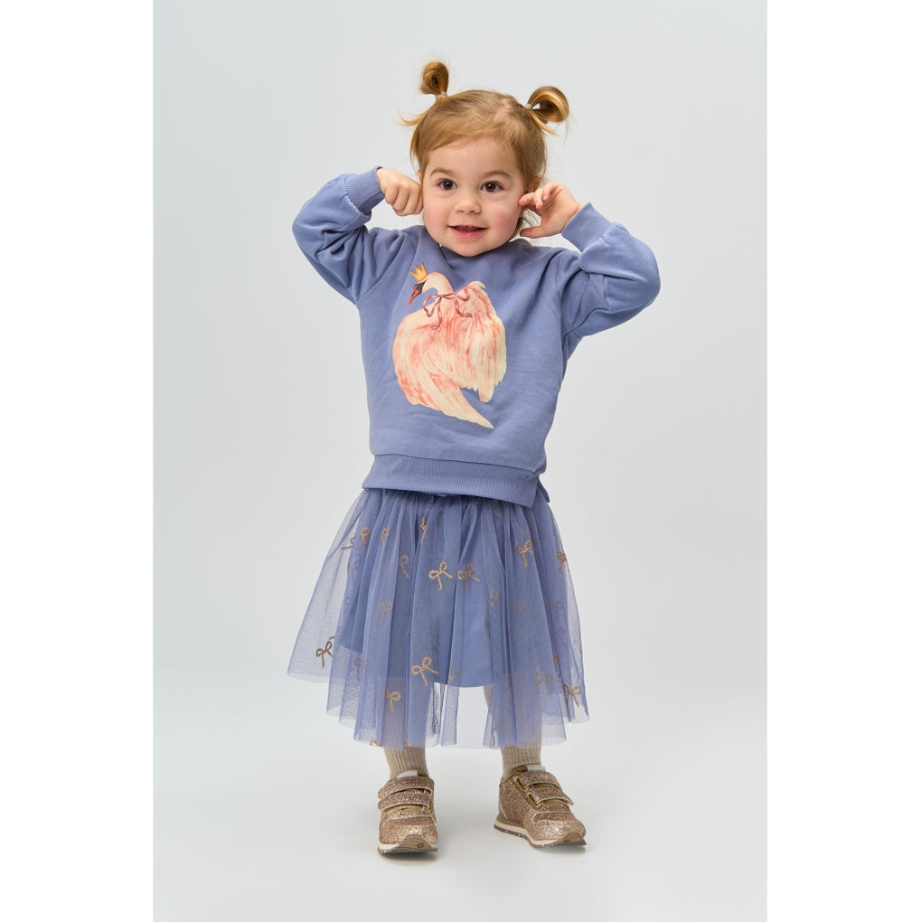 This sweatshirt from THE NEW Siblings combines comfort and imagination in one sweet design. It features a beautiful front print of a swan wearing a crown, adding a whimsical and charming touch. The sweatshirt has a relaxed fit and classic ribbed edges at the neckline, cuffs, and hem, ensuring a comfortable and flexible fit. Available in two colors.