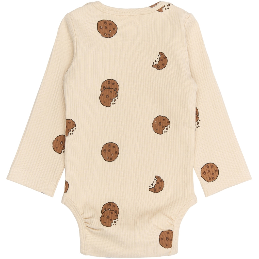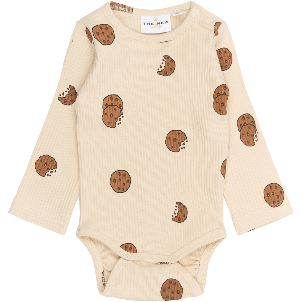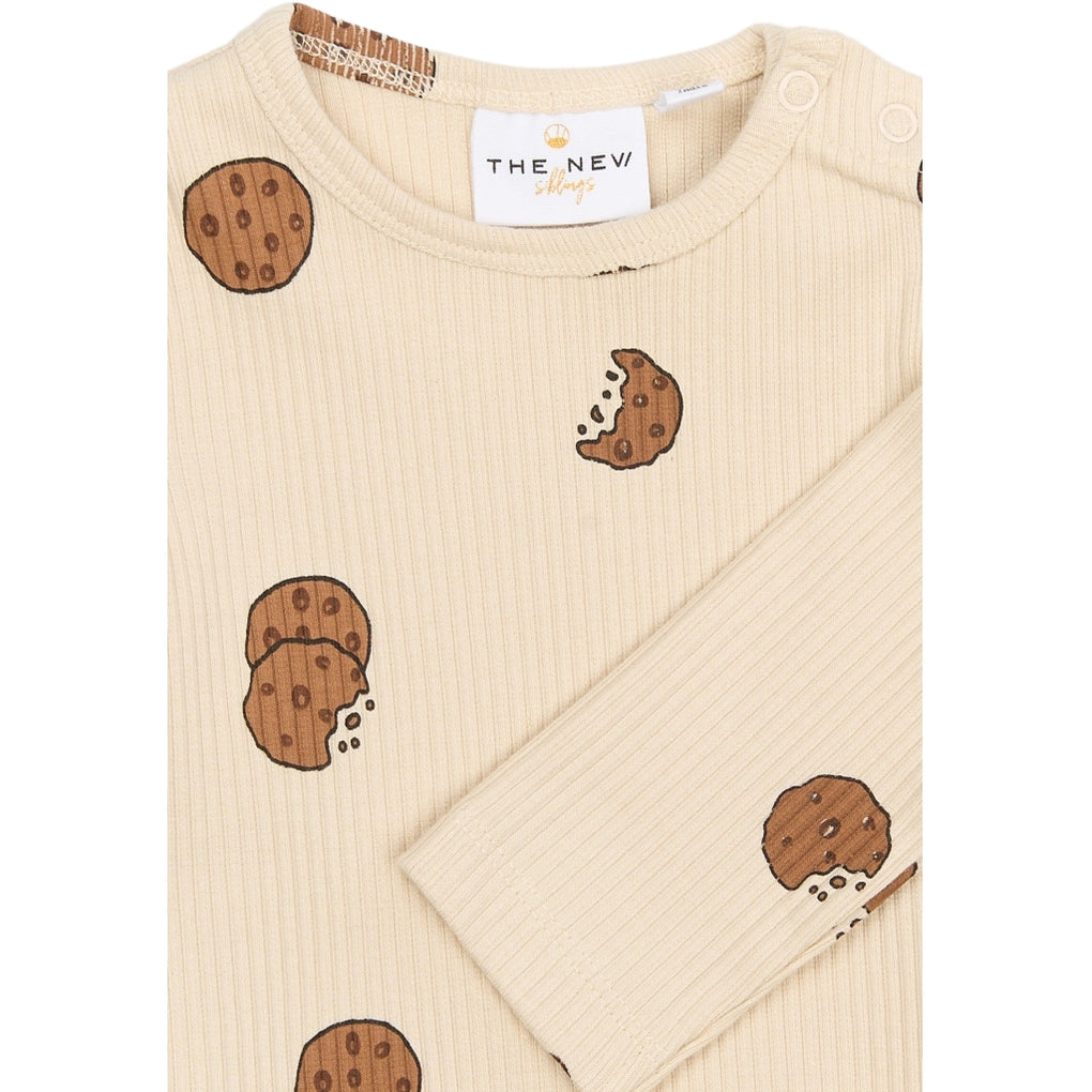 This long-sleeved bodysuit from THE NEW Siblings is both practical and full of personality. It features a fun all-over cookie print that adds a playful and charming touch. The bodysuit has a slim fit and is easy to open with snap buttons at the shoulder and bottom, making it ideal for both everyday wear and playtime.