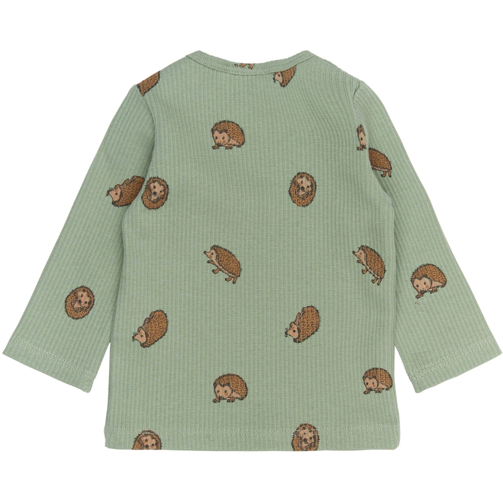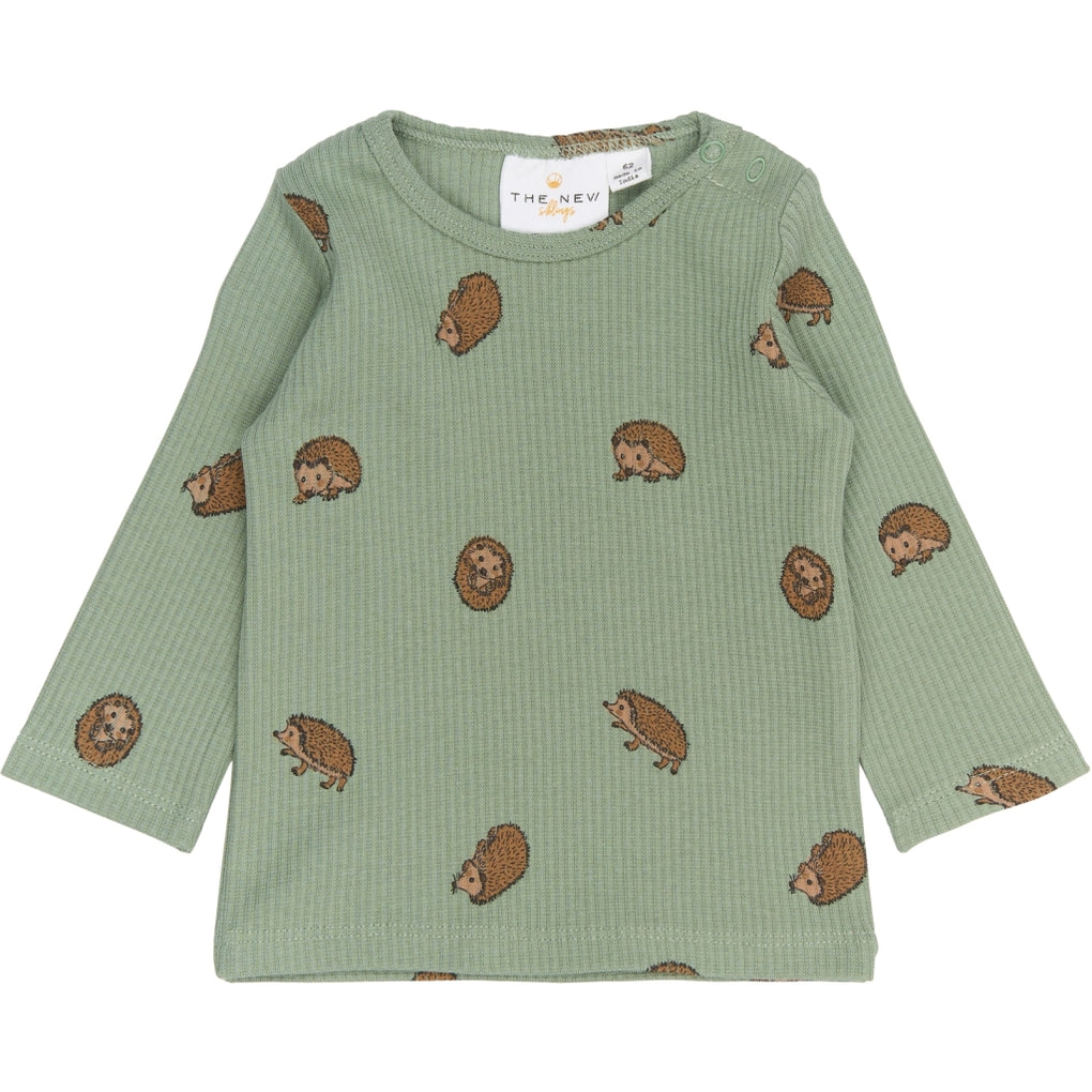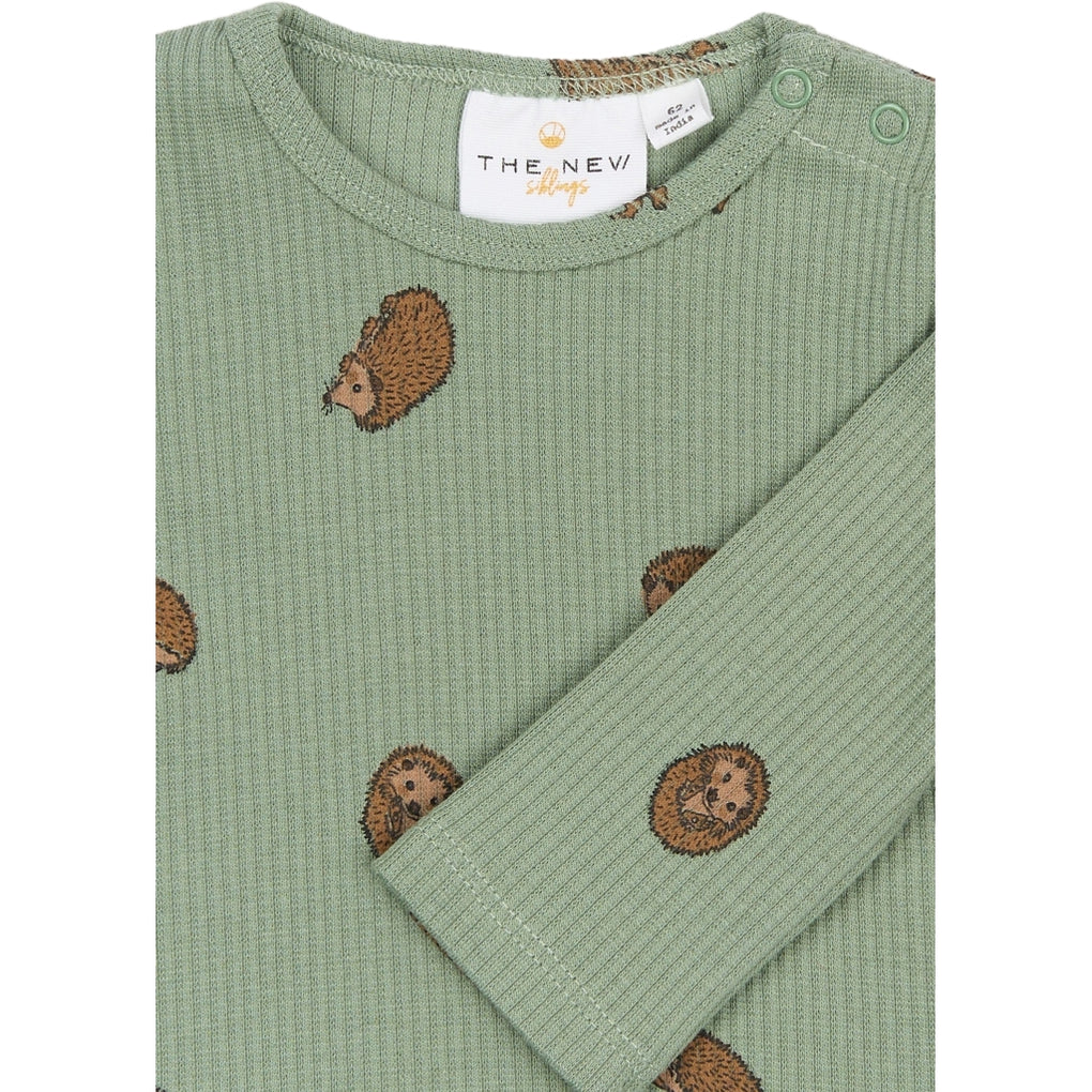 This long-sleeved T-shirt from THE NEW Siblings is a cute and comfortable everyday style for little ones. It features a charming all-over print of small hedgehogs, adding a playful touch. The slim fit makes it perfect as a soft layer under a cardigan or sweatshirt – or worn on its own on warmer days. Perfectly matched with the coordinating TNSBRiver Rib Leggings for a complete and cohesive look.