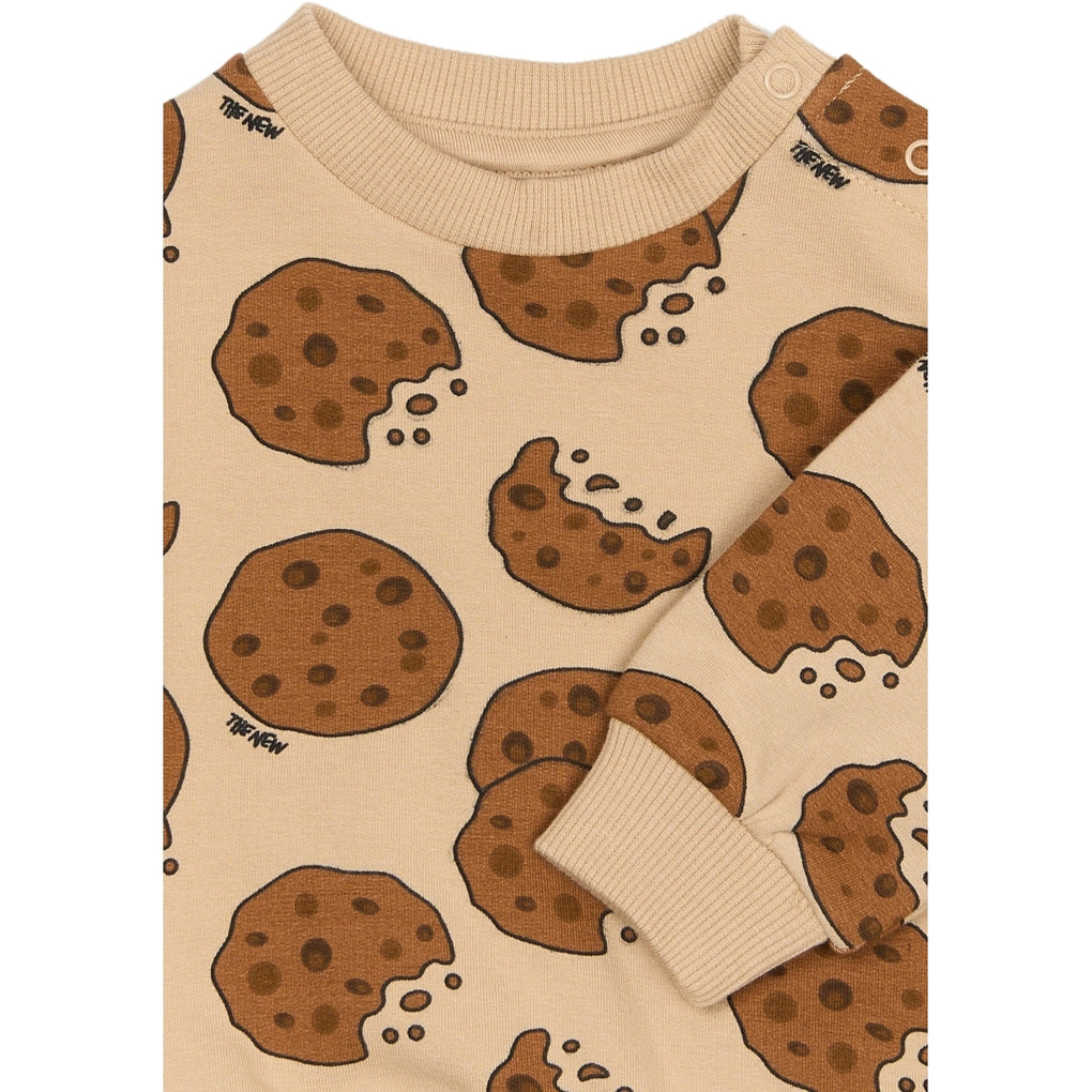 This sweatshirt from THE NEW Siblings brings fun and comfort into everyday life with its eye-catching all-over cookie print. It features a relaxed fit and is designed with ribbed edges at the neckline, cuffs, and hem for a secure and flexible fit. Perfect for little cookie lovers and ideal for both play and cozy moments. Can be paired with the matching TNSBRene Sweatpants.
