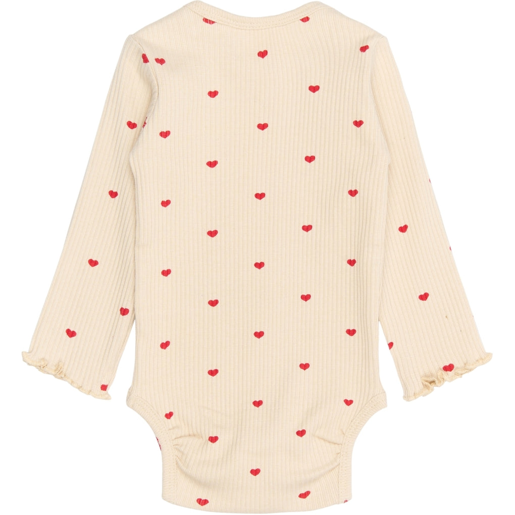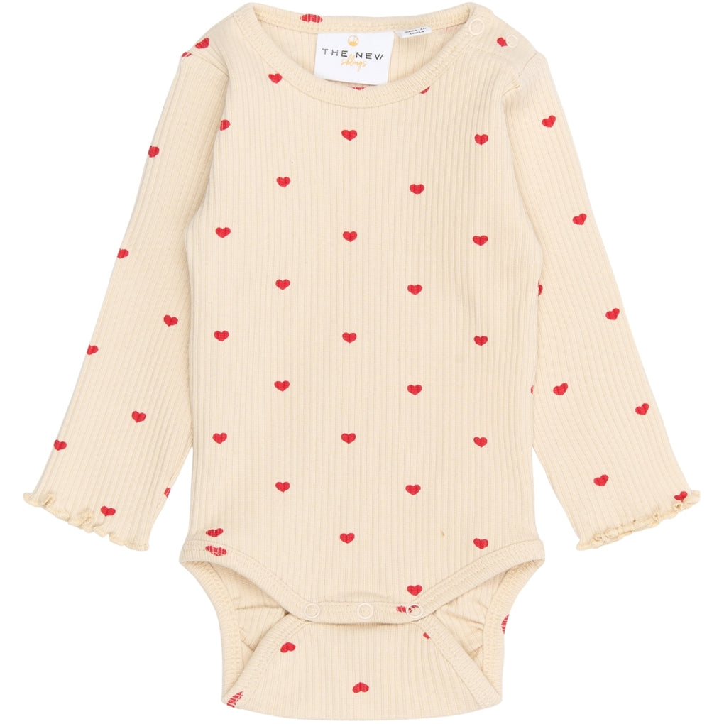 This long-sleeved body from THE NEW Siblings is both sweet and functional – perfect for the little ones. It features an all-over print of small hearts and delicate frilled sleeve edges, creating a charming and playful look. The body closes with snap buttons at the shoulder and bottom, making it easy to put on and take off. Ideal for both everyday wear and cozy moments.