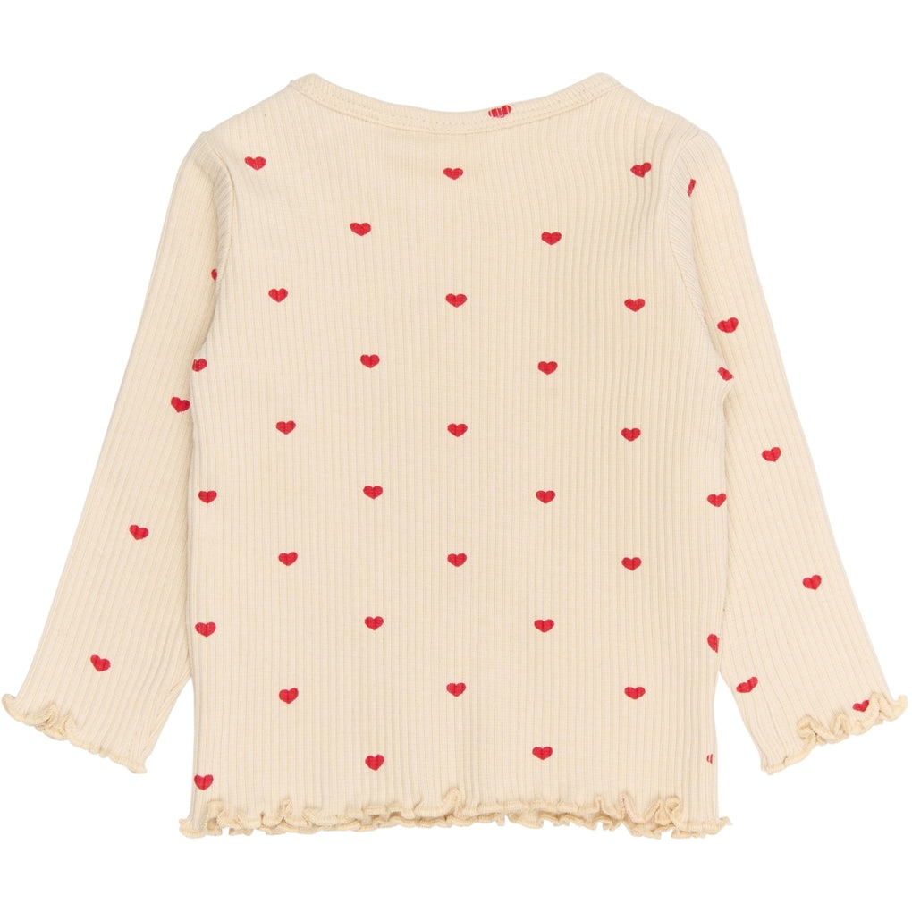 This long-sleeved T-shirt from THE NEW Siblings is a sweet and comfortable everyday style with feminine details. It features an all-over print of small hearts and scalloped edges at the neckline, sleeves, and hem, adding a playful touch. The slim fit makes it easy to pair with everything from leggings to trousers and skirts.