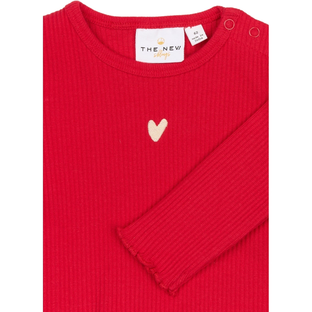 This long-sleeved T-shirt from THE NEW Siblings is a cute and simple wardrobe basic with lovely details. It features scalloped edges at the neckline, sleeves, and hem, along with a small heart print on the chest that adds a charming touch. The slim fit makes it easy to pair with trousers, skirts, or layered under a cardigan.