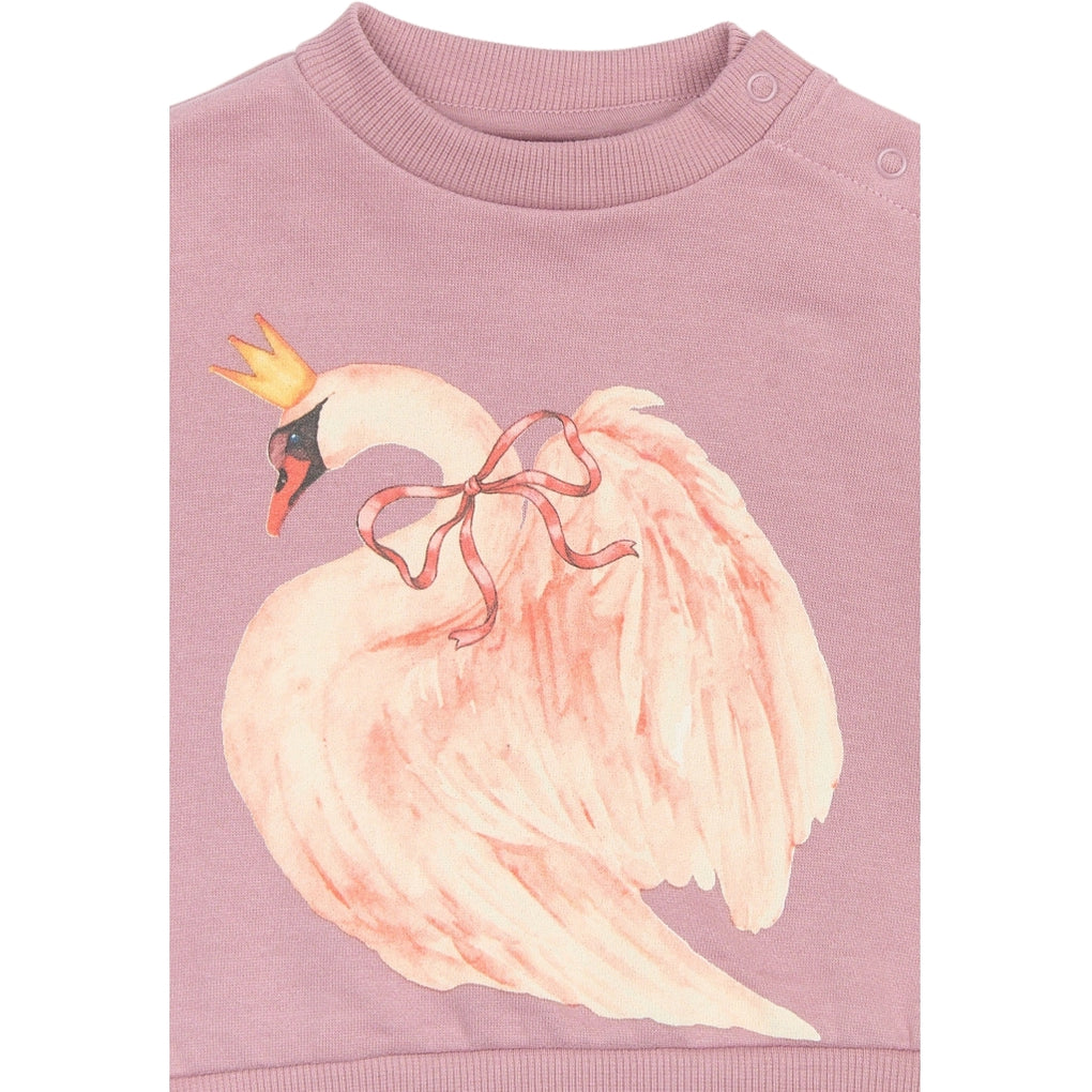 This sweatshirt from THE NEW Siblings combines comfort and imagination in one sweet design. It features a beautiful front print of a swan with a crown, adding a whimsical and charming touch. The sweatshirt has a relaxed fit and classic ribbed edges at the neckline, sleeves, and hem for a comfortable and flexible wear. Available in two colors.