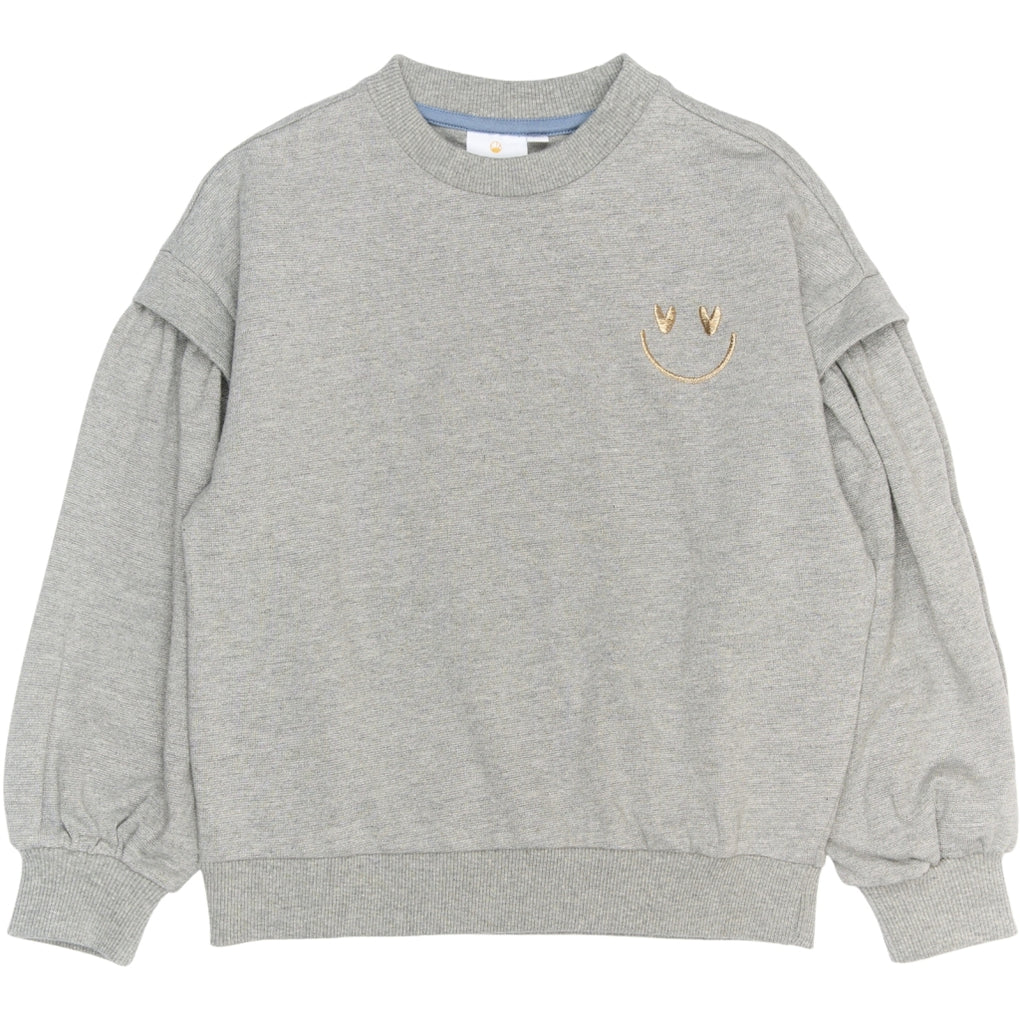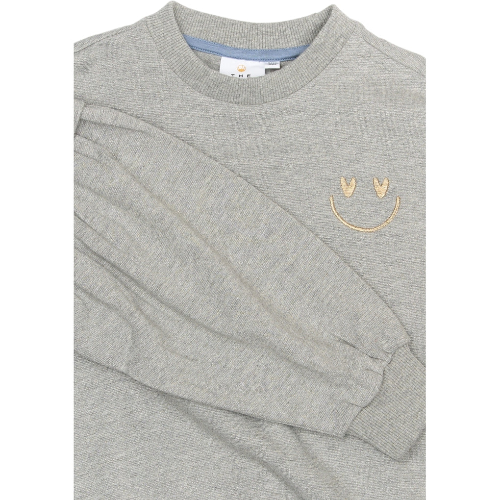 Lovely sweatshirt from THE NEW with stylish balloon sleeves and charming details. This soft and comfortable sweatshirt features a relaxed fit, ribbed edges, and a small embroidered smiley on the chest with gold heart-shaped eyes. The layered shoulder design adds a unique and trendy touch, making it perfect for both casual days and stylish outfits. Pair it with the matching TNRenata Glitter Sweatpants for a trendy set.