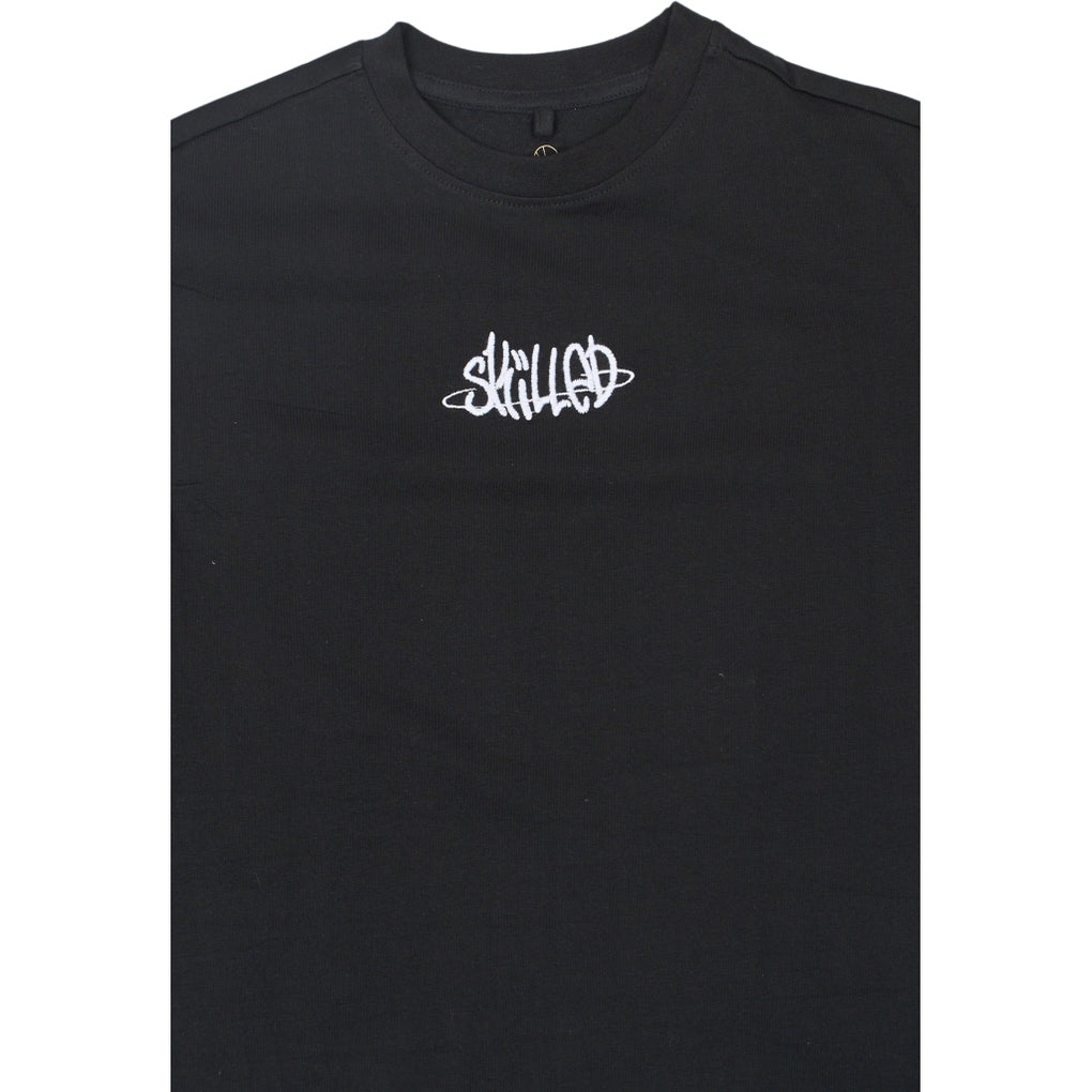 Upgrade your streetwear wardrobe with this oversized T-shirt from THE NEW. Featuring a sleek and relaxed look, this T-shirt is perfect for everyday wear. The front showcases a minimalist "SKILLED" embroidery, while the back is adorned with a bold print of two blue dice and a large "SKILLED" graphic design. The loose fit and soft cotton material ensure maximum comfort and a cool, modern style.