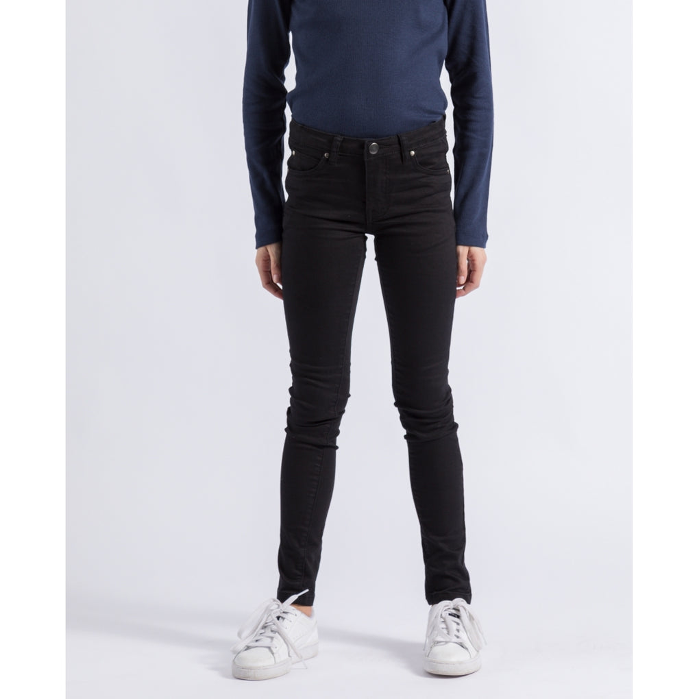 Tight fit jeggings in a very stretchable fabric. With front- and back pockets. Adjustable elastic in the waist.