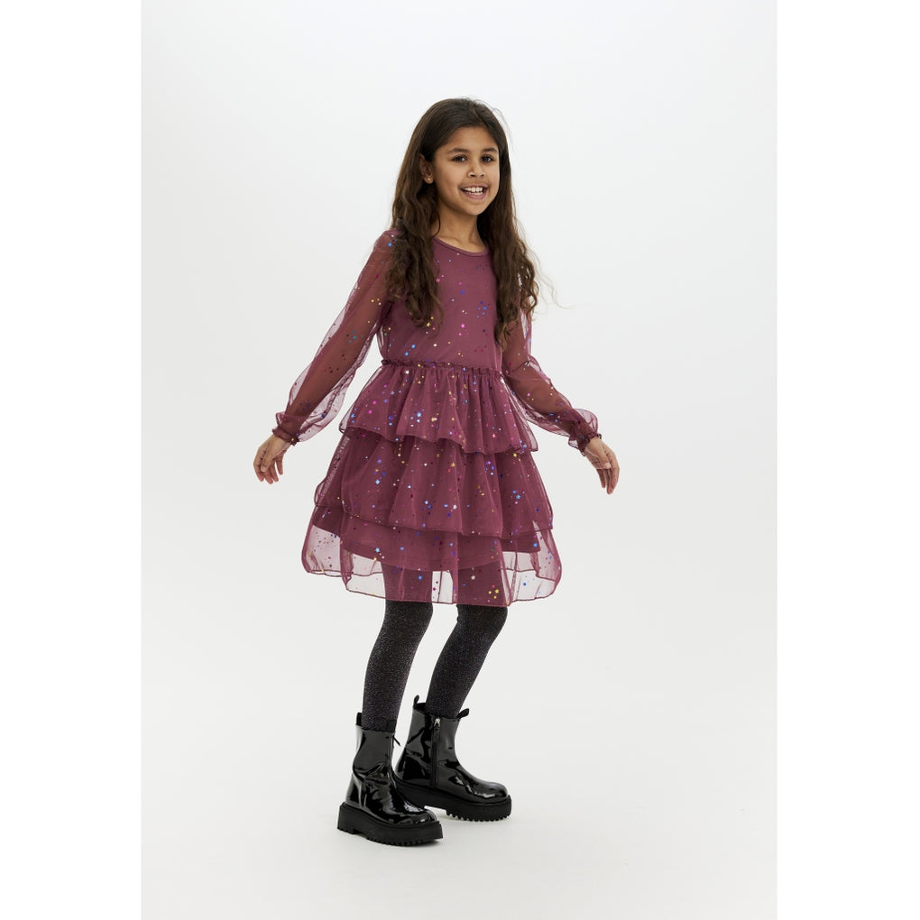 Enchantingly beautiful long-sleeved frilled dress that sparkles like diamonds. This mesh dress from THE NEW is designed with thin, transparent sleeves and an underdress made of soft and breathable fabric. It is a stunningly beautiful and glamorous party dress. Perfect for Christmas parties, Christmas Eve, New Year's Eve, and other festive occasions.